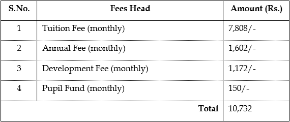Present fee structure for Pre School Class (session 2025 – 2026) is as under :